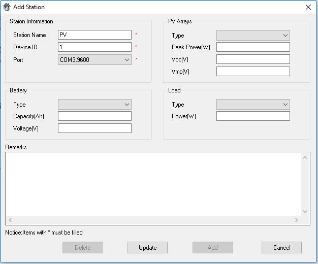 Über „Communication -> Add Station“ den Laderegler anlegen: