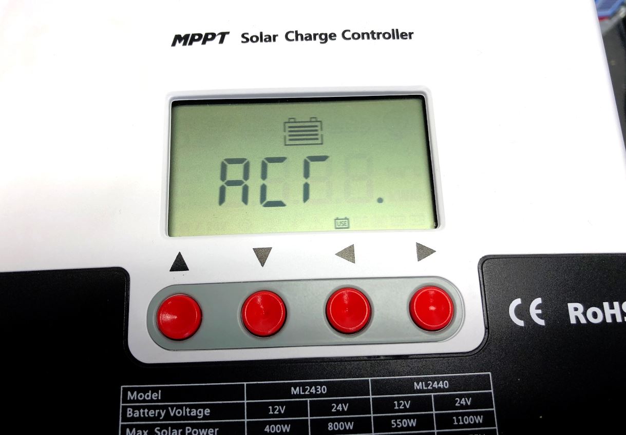 Fehler ACT oder ACR auf Display des SRNE TOYO SR-ML2440 MPPT Solar Laderegler wie auf diesem Bild zu sehen: